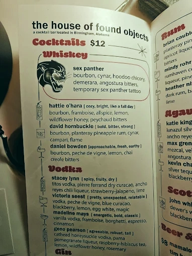 The House of Found Objects in downtown Birmingham, Alabama is a lively cocktail bar full of character. With immersive themed rooms, whimsical décor, and drinks named after local regulars, it offers a fun and unforgettable nightlife experience.